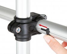 RK Rose+Krieger biedt de light clamp buisverbinders aan in twee maten: 10-18 millimeter en 20-30 milliemeter. De voerdiameter is variabel instelbaar met verloopbussen, waardoor verschillende doorsneden (ronde en vierkante buizen) en buisdiameters worden ingeklemd.