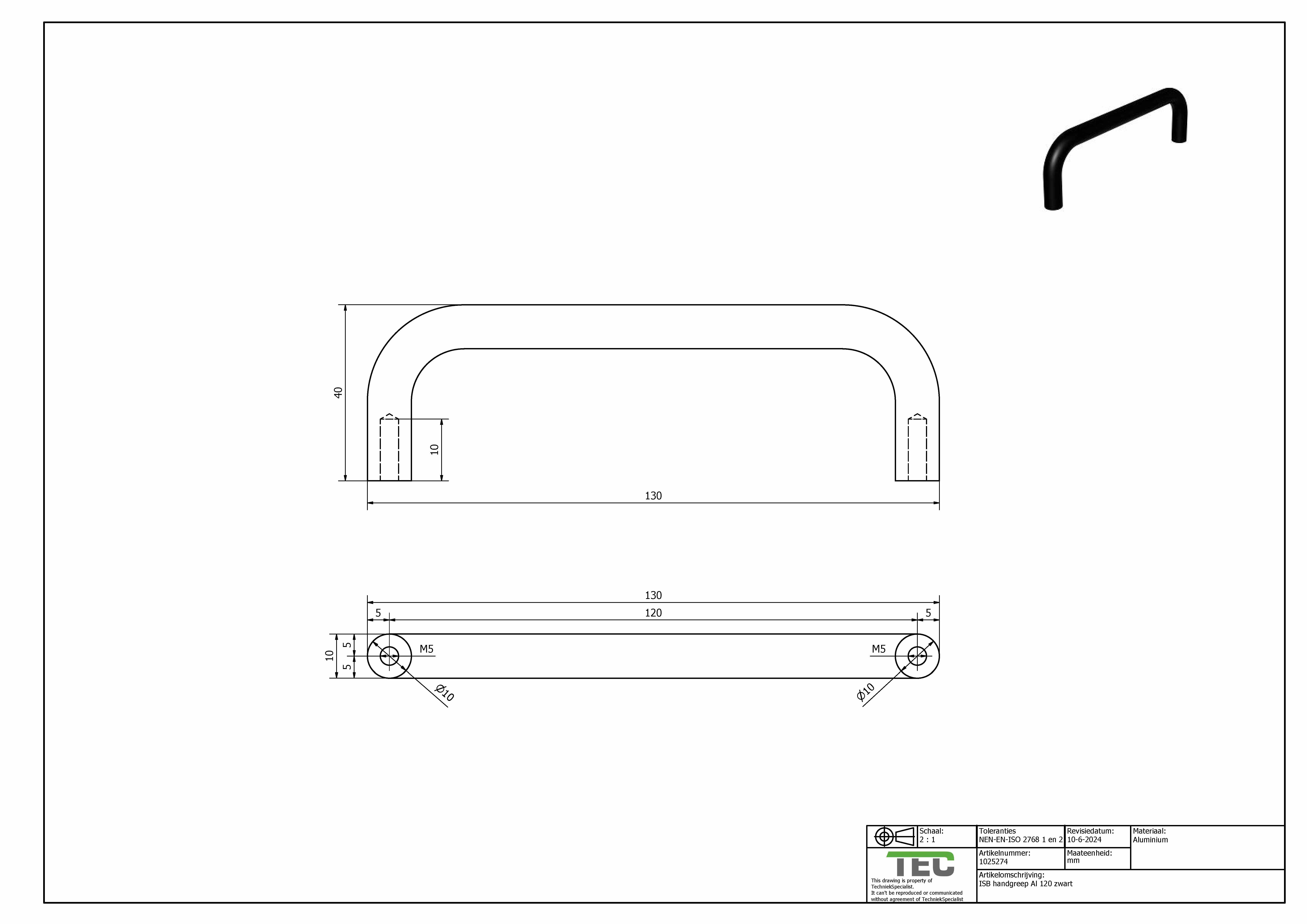 Deze aluminium handgreep van ISB is uitermate geschikt in combinatie met onze ISB aluminium profielen. De handgreep is voorzien van M5 draad waardoor montage 'vanaf de achterzijde' met een M5 bout mogelijk is. Montage 'vanaf de voorzijde' is mogelijk in combinatie met de ISB handgreep bevestigingsset Al 120 (art. nummer 1025276).